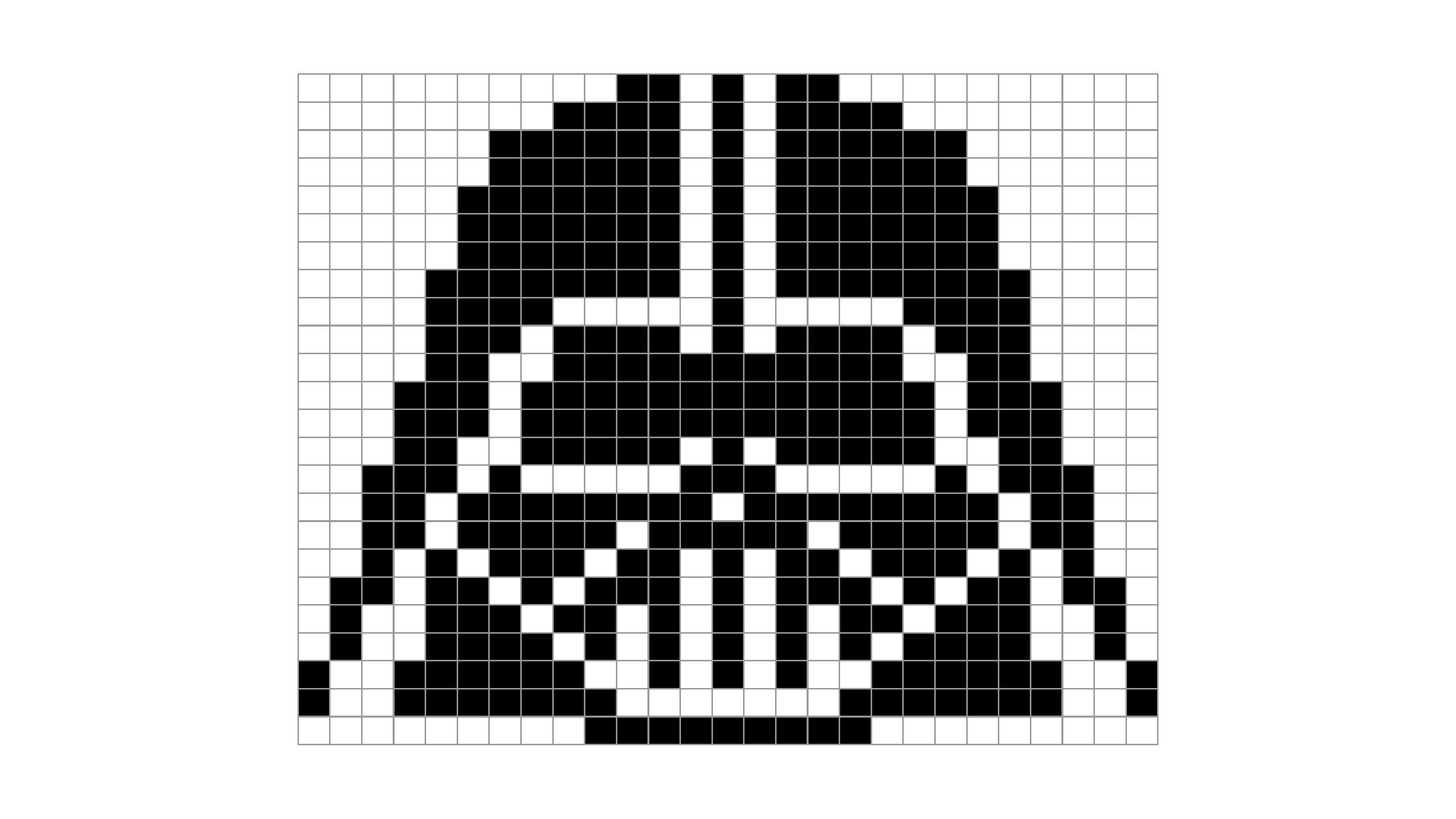 Die Logik in der Schleife ist einfach: Wenn alle Farbkomponenten den Wert 255 haben, dann ist das Pixel weiß und gehört somit nicht zu Pacman. Wir notieren also eine 0. Ansonsten ist das Pixel Teil von Pacman, und wir notieren eine 1.