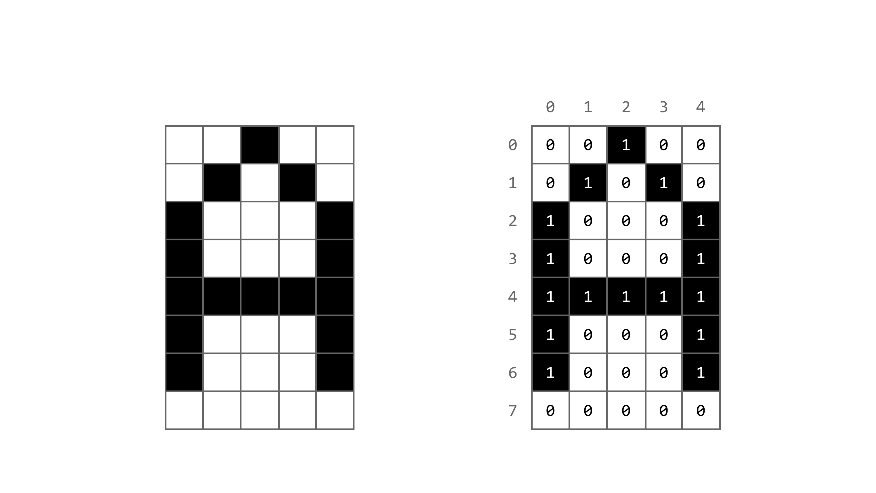 In unserem Fall kann ein Pixel entweder schwarz oder weiß sein. Auf anderen Bildschirmen, wie dem eures Smartphones oder Fernsehers, können Pixel auch farbig sein. Das schauen wir uns später noch genauer an. In diesem Kapitel konzentrieren wir uns zunächst auf die einfache Schwarzweiß-Darstellung. Auch, weil unser OLED-Display nur Schwarzweiß kann.